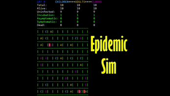 This is an Epidemic Environment Simulation. This is a simulation that shows the spread of a disease with no vaccine on humans over many days on a visual grid. All humans start as uninfected except for 1 human from each age class (Child/Adult/Elder). Humans may move each day and the infection will spread based on age/distance from the infected/if the virus was previously had.